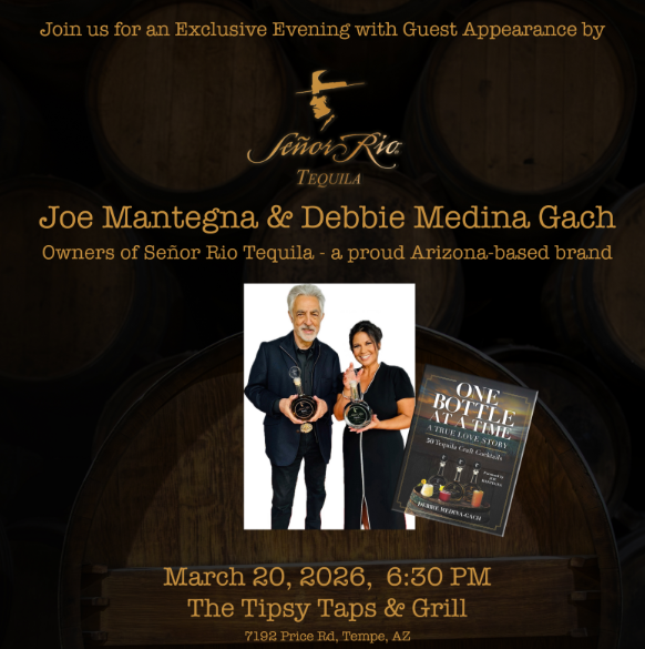 This exclusive evening features a special guest appearance by Joe Mantegna & Debbie Medina Gach, owners of Señor Rio Tequila, and includes a thoughtfully curated dining and tasting experience.